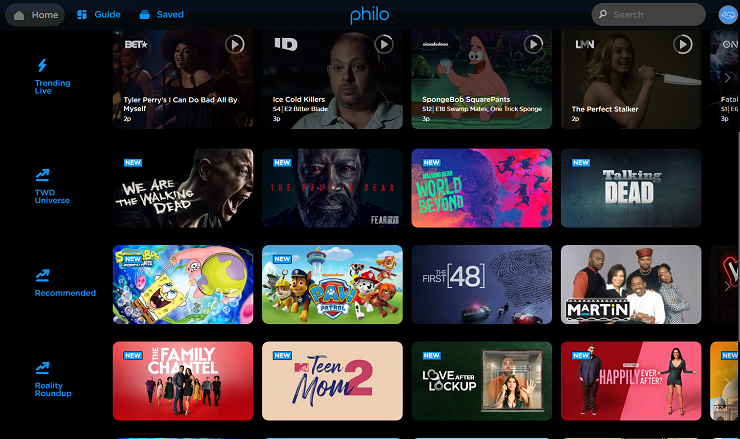 Unlike its competitors, Philo does not include expensive sports or local news channels. Instead, it focuses on providing entertainment options like reality shows, movies, lifestyle programming, and classic TV.